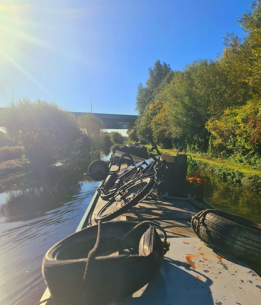 I am on the final stretch of the day. This section is particularly pretty, with trees lining the canal and the sun now right overhead. The Autumn colours are truly glowing and I find myself jealous of the residents whose houses look over the water here, even though I will also be living here for now and will most likely be bored of it in a week and a half. I moor up in a sunny spot and finally treat myself to some lunch. It is now only 15 locks back into London. With the day still young and the sun shining, I decide to go on a cycle ride along the towpath ahead. It is fair to say that it is quickly getting more and more difficult to find a mooring…
