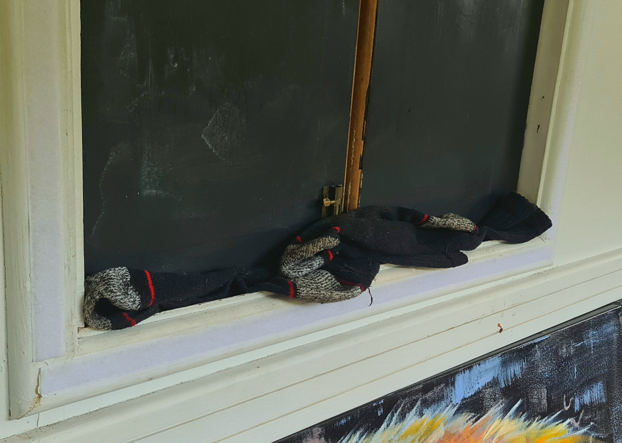 Socks reducing the draft.