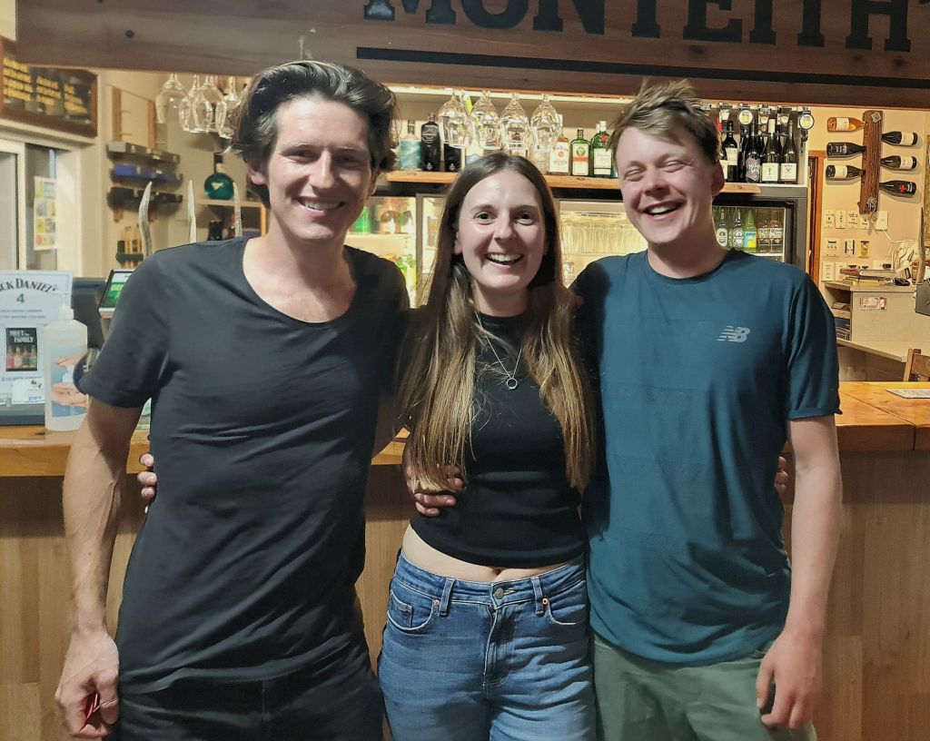 The sunny sky turns to grey and the wind picks up for our last leg of the day. We are blessed to learn that the wind is mostly coming from behind. We glide along, hardly pedalling, with the aid of the wind pushing us to our destination. We reach our hotel in Mossburn at about 5pm. This is a triumph compared to yesterday. I take the chance to wash some clothes and make some calls to sort out a bike box for my flight home in two days. Will also cracks on with some admin and we later reunite for dinner in the pub, joined by a special guest.
