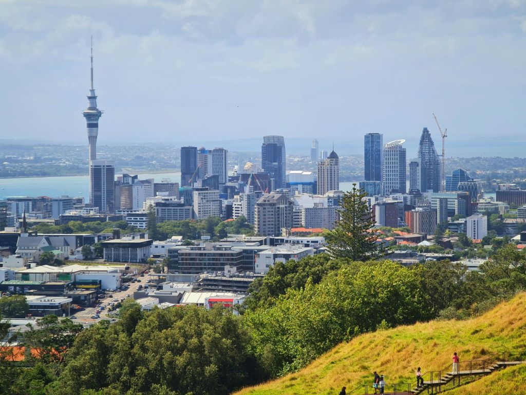 We finish our pizza and set off again. The Auckland traffic is vile and we somehow manage to lose Markus in all the commotion, but we reunite at the bridge on highway 16, which fortunately has a sealed cycle path, with a fence separating us from the four lanes of cars. We bomb it down and make our way to Mount Eden. On our way, we pass Ash and Andy, Sebastian, as well as a couple of others, and naturally, continue our journey together. It’s good to be with the team again. We push ourselves up the ascent to the summit, whilst simultaneously trying to navigate the awkwardness of Auckland’s cycle lanes. We eventually make it to the summit, where we find Janet and Aaron waiting, as well as a few others. The views are absolutely stunning, though I must say, the bikes all lined up again is an image I enjoy even more.