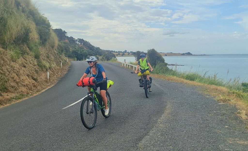 Being slightly off course, we cycle through a lovely park and then make it back to the road. We zoom down the highway to Clevedon, stopping for a drink with Paora, who we again have coincidentally crossed paths with along the way. Next, we head for Kawakawa Bay, home of Alex and Cliff (think back to when I herded sheep) and stop off for a catch up, as well as some apricots and biscuits to push us over the next hill. It is fun to have come full circle.