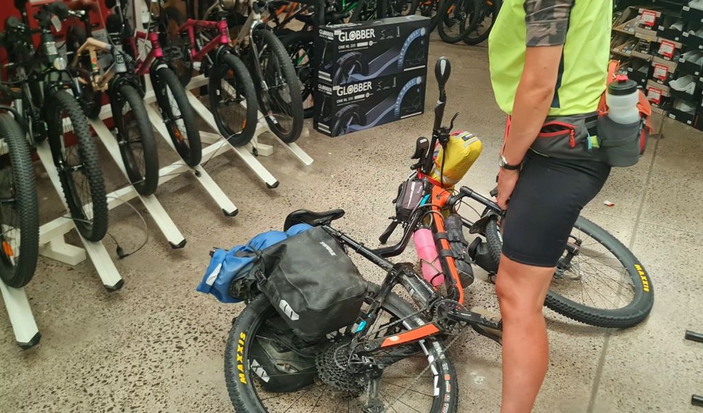 The next day, I again make the decision to leave after 9am. This is a wise decision. That first two hours of heaving through the traffic is not enjoyable. Luckily, Sherree and I had planned to converge at the airport. We get moving again and are relieved by the sight of cycle lanes at last. As we are grooving along, something odd happens to her bike. She’s pedalling and nothing is happening. The chain is on. This is odd. Something is seriously fishy and this is not something that we can fix ourselves. We Google the nearest bike store. There’s one 2.5km away. It also, by divine chance, happens to be where I bought my bike 12 days ago.